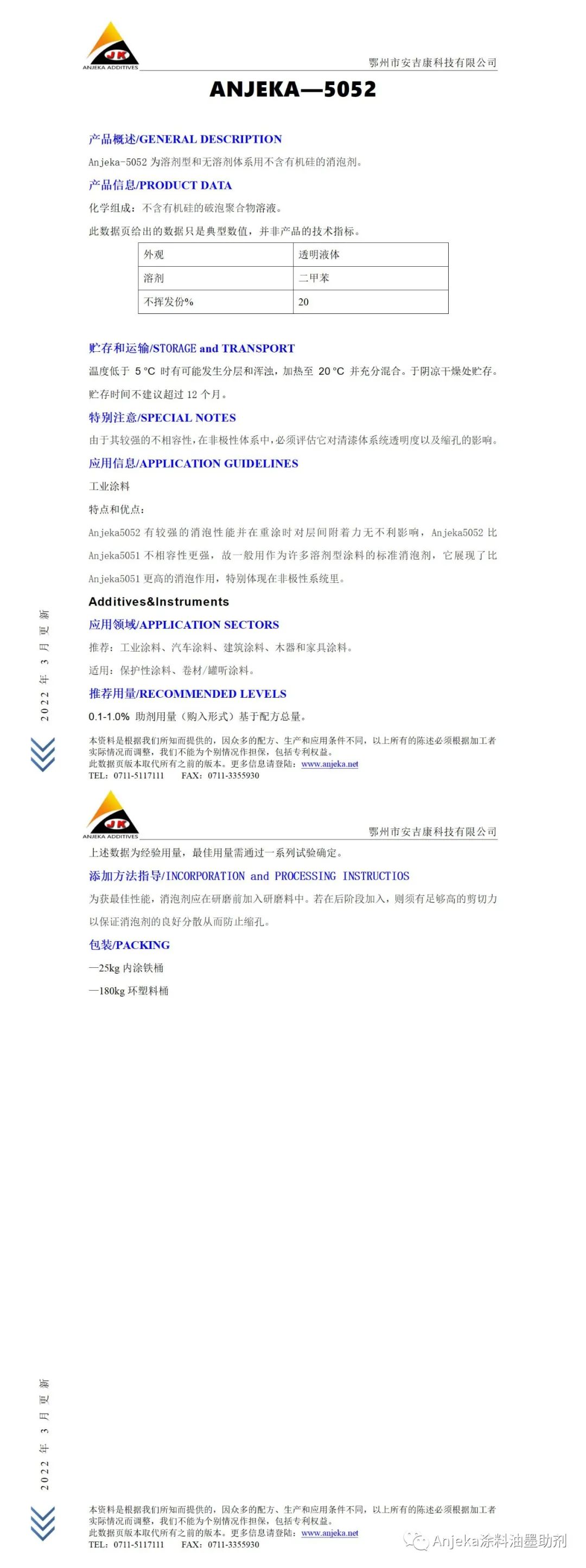 Anjeka-5052溶劑型和無溶劑體系用工業(yè)汽車涂料不含有機硅的消泡劑,可替代BYK052